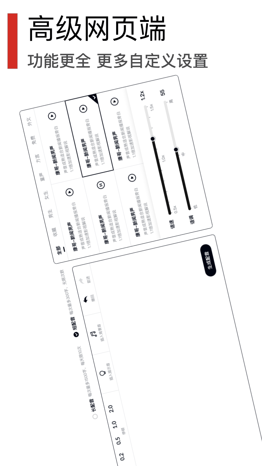 此软件拥有丰富且强大的多项功能。其中文字转语音功能支持多国语言与方言,能够精准自然地将输入的文字转换为对应的语音输出。用户可以根据需求选择不同的声音类型,包括温柔细腻的女声、沉稳雄浑的男声,甚至还设有俏皮可爱的童声选项。此外,还可以调节语速、语调和音量,使生成的语音效果更贴合实际需求。语音合成功能则允许将多个语音片段组合作成完整的音频文件,并可加入特效音色以增强趣味性。在音频编辑方面,软件支持裁剪、拼接和降噪处理,提升音频的整体质量,满足专业和个人用户的多样化需求。