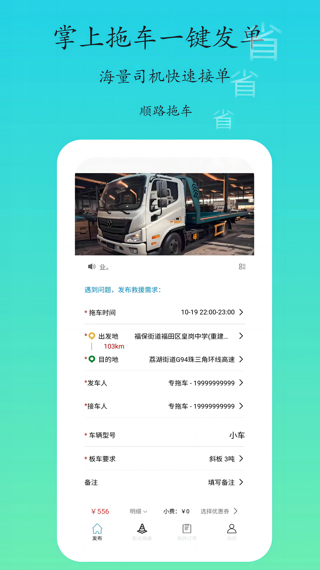 专拖车是一款专注于提供高效、便捷道路救援服务的应用,主要解决车辆故障或事故后的拖车需求。它通过智能匹配附近的拖车资源,实现快速响应,帮助用户摆脱车辆抛锚的困境。无论是城市内短途拖运还是跨城长途运输,都能提供透明、可靠的服务。平台整合了全国范围内的专业拖车司机和商家,确保用户在任何地点都能获得及时援助。