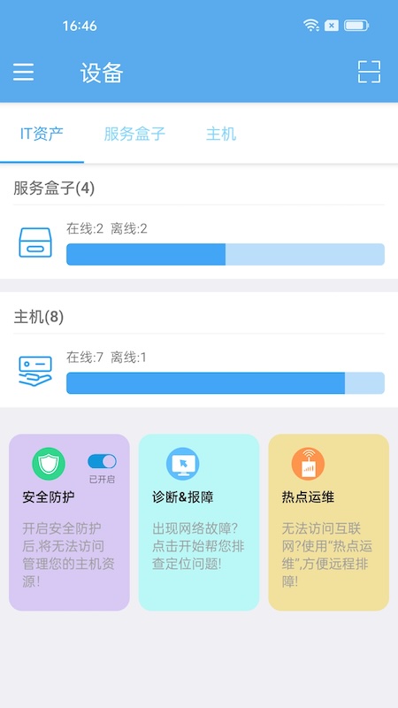 在IT运维领域,爱菠萝支持同时添加多台设备,实现集中统一监控管理,用户可以随时掌握设备运行状态,进行全面诊断,迅速响应故障问题,便于维修维护工作。核心功能涵盖IT资产管理、实时监控报警、故障自动识别与修复、远程诊断与线上处理,确保即便非IT专业背景的用户也能轻松获得专业级运维服务体验。在儿童守护层面,软件提供定时锁屏、视力防护、应用限制、网课助手等实用工具,帮助家长科学合理地管理孩子的电子设备使用时间。借助云计算和微服务架构,软件实现了高效、便捷的服务流程,大大提升了用户体验。