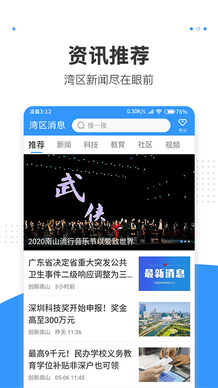 “湾区消息”是一款专门为深圳南山区居民量身定制的本地新闻资讯与政务服务平台,它汇聚了融媒体中心、新时代文明实践中心和文体通这三大核心平台的功能。此应用的主要目标是使用户在不离家门的情况下,能够第一时间掌握区域内的最新信息,同时提供一站式政务办理、公共文化服务以及志愿者参与入口。这款APP宛如你的南山百事通,无论政策发布、企业动态还是社区活动,都能实时获取,真正实现“ fingertips up,知晓湾区”的便捷体验。