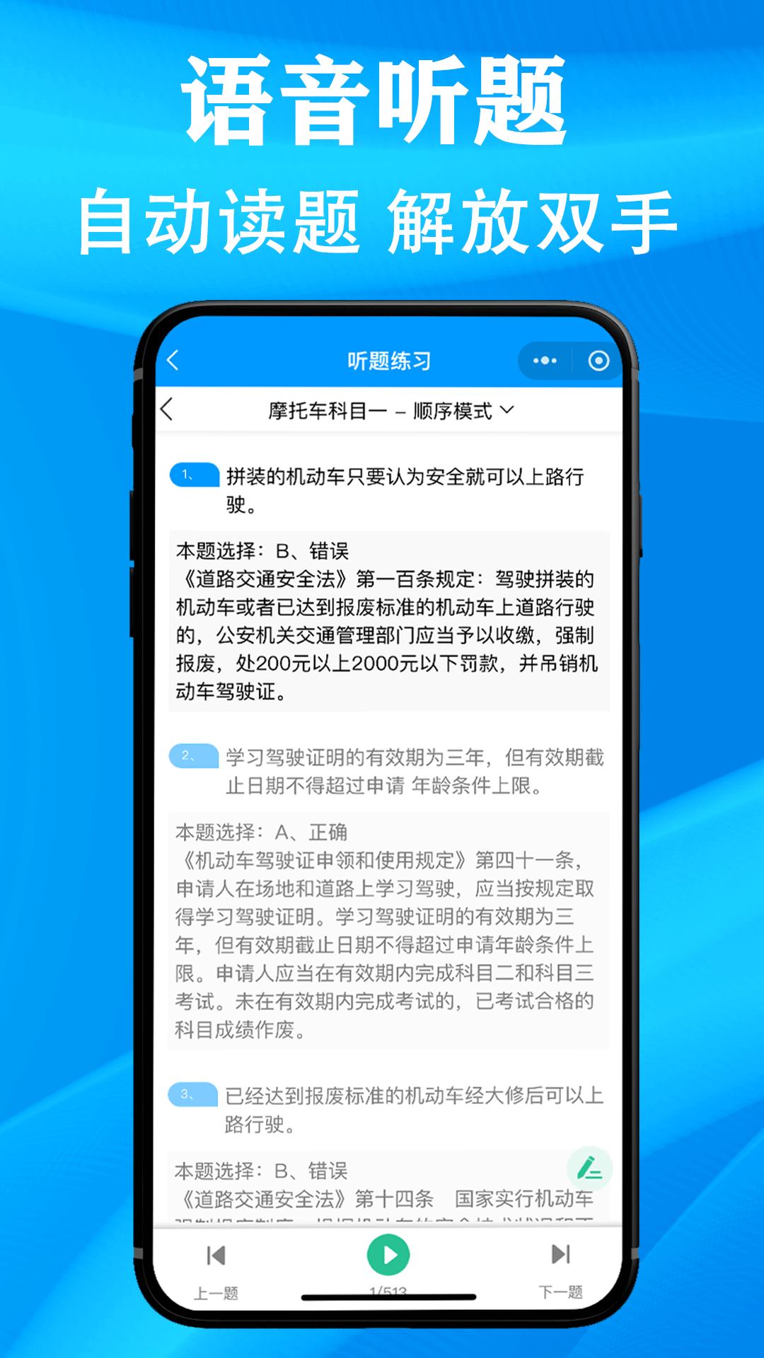 专为准备摩托车驾驶执照考试的用户量身打造的实用工具——准橙摩托车考试,涵盖了从科目一到科目四的全部学习资料,包括理论题库与实操指导。这款软件依托持续更新的题库和智能化学习辅助功能,已成为众多摩托车驾校推荐的备考首选。无论是申请DEF等级驾驶证,还是电动车相关考试,它都提供涵盖电动摩托车、两轮和三轮摩托车的丰富题库资源,帮助用户高效掌握考试重点与技巧。