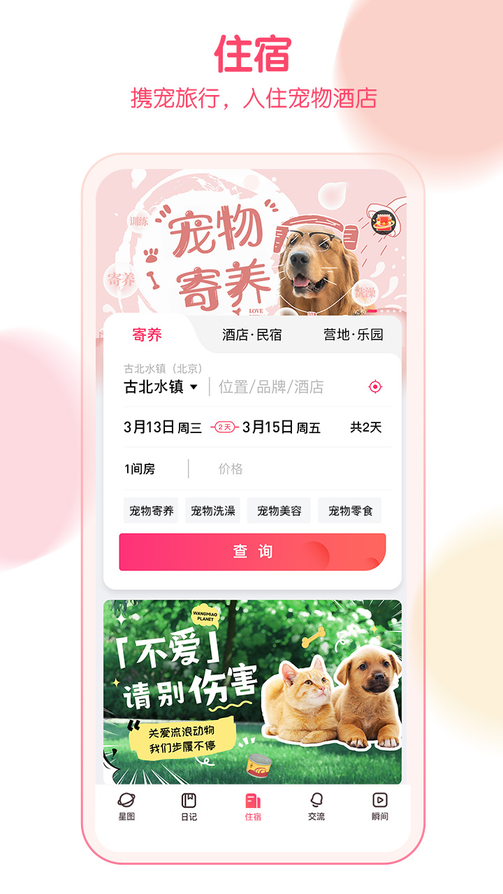 宠行宠宿是一款专为宠物爱好者量身定制的多功能服务平台,旨在为宠物主人们提供从出行安排到日常护理的全方位解决方案。无论您希望携带毛孩子外出旅游,还是临时需要寄养照看,这里都能满足您的多样化需求,让您与宠物的生活变得更加轻松愉快、充满乐趣。