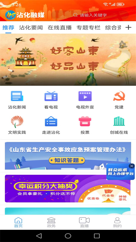 沾化融媒是一款融合多项功能的综合性本地媒体应用,旨在为沾化地区居民及关注者提供全方位的信息服务。该平台依托沾化本土资源,整合新闻资讯、生活便捷服务、社交互动等多个模块,构建一个高效、便捷且实用的信息交流平台,使用户能够及时掌握沾化的最新动态,满足其日常生活所需。用户在平台中不仅可以获取包括政治要闻、社会热点、文化活动在内的最新信息,还能利用便民查询、线上缴费、招聘求职等多项生活服务,成为沾化百姓生活中不可缺少的重要助手。