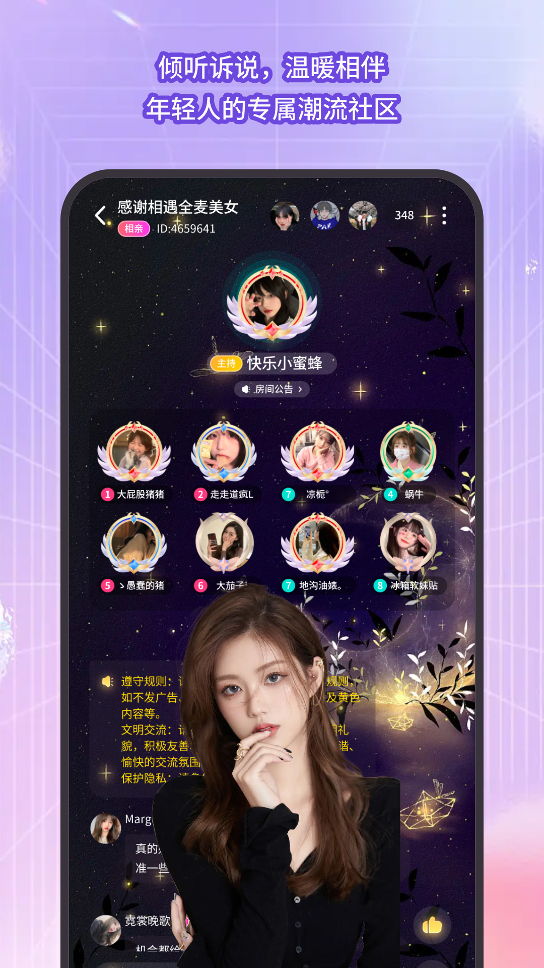 亲爱的朋友们,今天我想为大家介绍一款专为游戏迷打造的语音交友平台,它不仅满足了广大玩家在娱乐中的社交需求,还提供了丰富多样的互动功能。不论是组队开黑、闲聊扩列,还是兴趣交流,都能在这里找到一个轻松愉快的沟通空间。这款应用凭借其专业的服务团队和丰富的功能设置,深受用户喜爱,成为许多玩家在游戏中的贴心伙伴和交流平台。