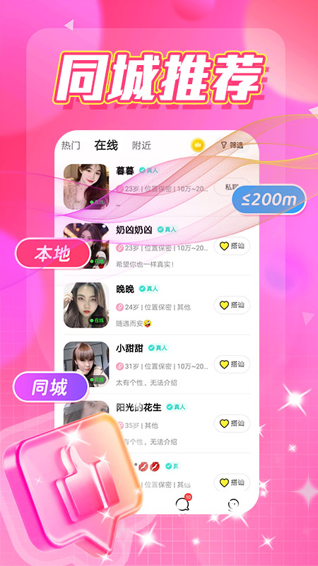 这款应用的最大特色是兼顾安全性与趣味性。真人认证体系杜绝机器人账号,减少套路化交友;隐私保护技术对聊天记录加密,并设立举报中心处理不良行为。地理位置服务支持海量同城交友,扩大社交圈。用户可通过文字、图片、视频等多种形式互动,或加入群组发起活动。独特的一键搭讪功能简化了破冰流程,而动态广场则成为展示个人魅力的窗口。