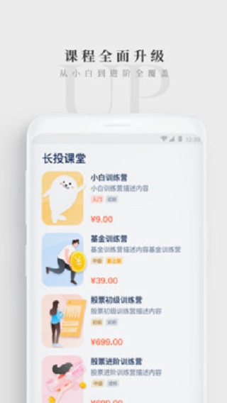1. 长投学堂旨在打造一个全面而系统的投资学习平台,用户可以通过该应用掌握涵盖股票、债券、基金以及房地产等多个领域的投资策略和操作技巧。平台内提供多样化的学习方式,包括视频课程、图文教程、在线研讨会以及案例分析,确保满足不同用户的学习偏好和习惯。