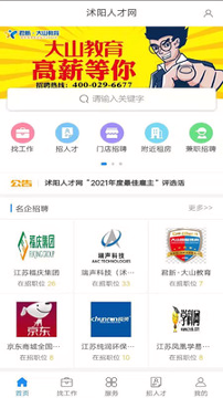 2.不仅如此,沭阳人才网不仅在技术水平和服务品质上表现优异,更在推动区域经济发展和缓解就业压力方面发挥了积极作用。对于求职者和招聘企业而言,使用该平台都是明智之举。