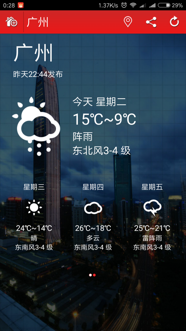 2.生活指数推荐:除基础天气信息外,硅谷天气还为用户提供穿衣指南、洗车建议、运动适宜度等多项生活指数,便利你的日常生活。