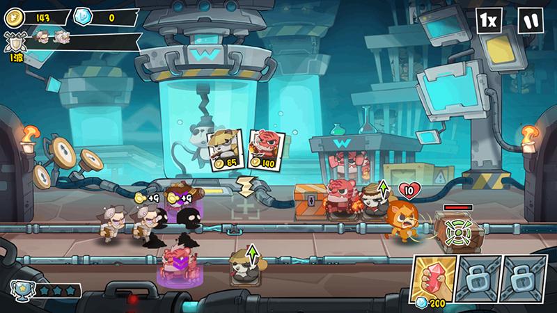 游戏的核心魅力在于动物塔的化学反应组合机制,拥有超过40种不同类型的动物防御塔,能够触发多样元素反应。例如,熊猫与老虎搭配能够引发燃烧效果,企鹅配合乌龟则实现冰冻控制。场景交互方面设计突破传统界限,篝火、暴风雪等环境因素不仅增强场景氛围,还能转化为战术资源。跨界合作也为游戏增色——人气漫画中的狗角色作为反派助手加入,提升剧情张力。全场有超过100个关卡,设有隐藏道具和多重胜利条件,随着难度递增,策略深度逐步释放。创新的移动塔防系统要求玩家在开拓路线和防御部署中同步兼顾,增添操作趣味。