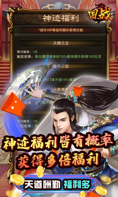 新手福利贴心丰厚,上线即赠VIP5、3万元宝及神将吕布,签到七天还能领到美女武将貂蝉。充值比例高达1:1000,首充双倍奖励,成长基金提供50倍返利,让平民玩家也能畅快体验。游戏平衡性佳,土豪大佬不会一味碾压——通过剿匪就能获赠充值卡,大大降低“氪金”压力。赛季制的天下布武玩法,有效避免“鬼服”问题,确保持续的激情对抗。交易系统完善,拍卖行里各种珍品应有尽有,还能在交流中结交志同道合的战友。