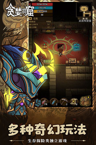 贪婪洞窟是一款融合了Roguelike元素的暗黑风格地牢探险手游,整体画面神秘诡异,采用随机生成的迷宫式玩法。游戏提供多达四种难度选择,拥有跨越400层的随机地形迷宫以及超过六十种怪物和Boss战役,装备系统丰富,包括300余件具有随机属性的可收集装备。剧情线索总字数超过两万,为玩家带来沉浸式的冒险体验。每次进入地牢时,都会遇到全新的布局,死亡惩罚机制增强了游戏的刺激感与策略深度。