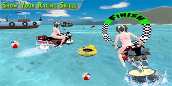 4.个性定制的摩托车:玩家可根据个人偏好,自由选择与改装多样的水上摩托,从外观到性能,打造属于自己的专属竞速座驾,彰显个性风采。