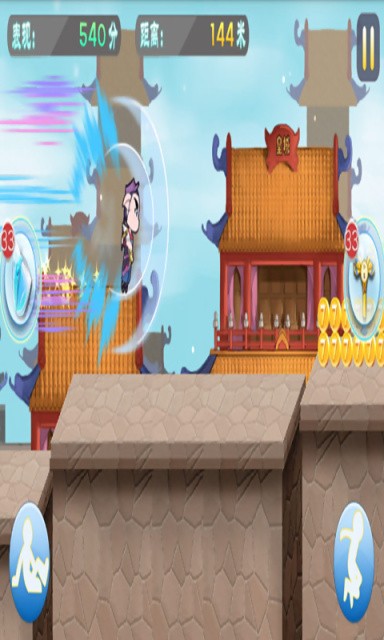 游戏操作简便,容易掌握,通过滑动屏幕实现角色的跳跃、滑行和变换车道等动作。玩家需要灵活运用这些技能,巧妙避开各种障碍物和敌人。在不断的游戏过程中,玩家还能解锁更多强力技能和实用道具,例如可以提升生命值的金箍棒,或短暂实现飞行的筋斗云,为应对不同挑战提供了极大帮助。
