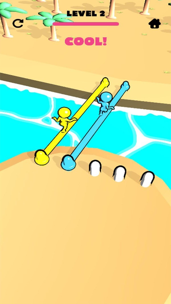 该游戏采用二维平面界面设计,色彩鲜明饱满,界面布局简洁清晰。玩家需要用手指在屏幕上操控绳索的走向,从而搭建出一座座桥梁。角色过河的路径、桥的长度与宽度,以及河面上的各种障碍物,都在不断变化,极大增强了游戏的挑战性。这不仅考验玩家的策略思考和逻辑推理,还要求具备敏捷的手速和灵敏的反应能力。
