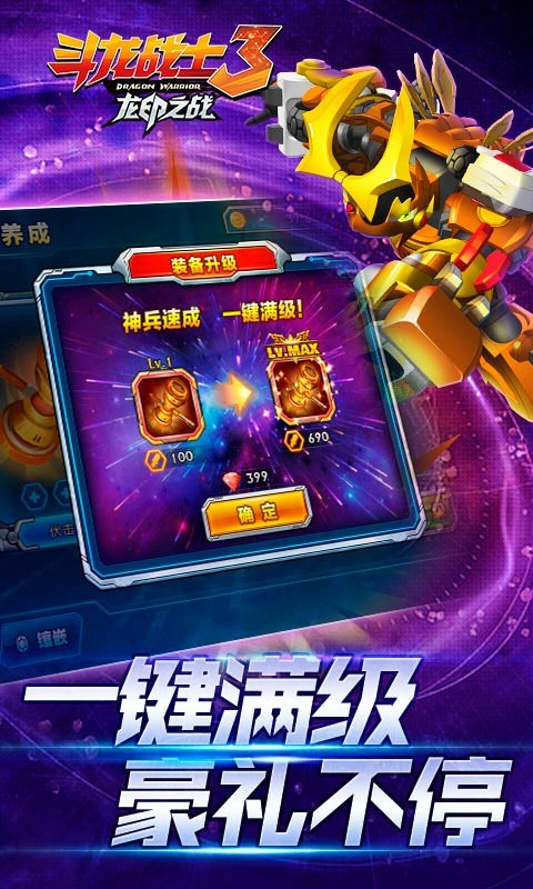 1. 斗龙战士3:龙印之战是一款以东方神话为核心背景,结合策略、角色养成与卡牌对战元素的移动游戏平台。由知名开发团队精心打磨,旨在为玩家呈现一个神秘瑰丽、充满挑战的游戏世界。玩家将化身为斗龙战士,招募伙伴,与邪恶势力展开战斗,化解危机,守护世界和平。